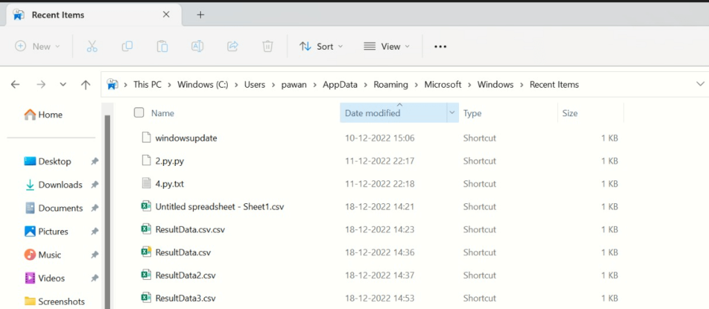 Suurimman osan ajasta Quick Access näyttää äskettäin avatut tiedostot Resurssienhallinnassa, mutta toisinaan se ei toimi ja lakkaa toimimasta. Siksi voit tarkistaa äskettäin avatut kohteetViimeisimmät kohteet -kansiojos et saa Quick Accessia näyttämään äskettäin avattuja tiedostoja tai jos haluat nähdä luettelon kaikista mahdollisista kohteista, joita on avattu tai joita on käsitelty. .