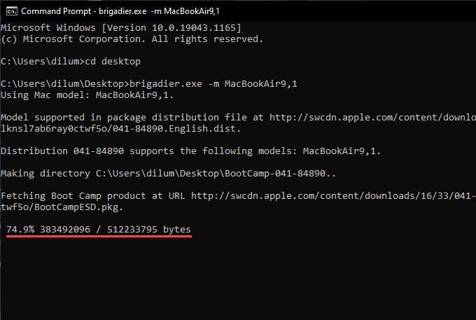 5.Yllä olevan komennon suorittamisen jälkeen huomaat, että se on alkanut ladata boot camp -ohjelmistoa tietokoneeltasi. Sinun on odotettava nyt prosessin päättymistä. Kun se on ladattu, näetBootcampKansio työpöydälläsi, joten siirry sinne ja avaa se.