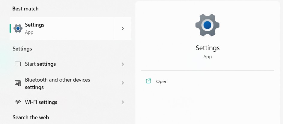 3.ValitaAsetuksetperäisinParas otteluTulosten osio avataAsetukset -sovellusWindows 11 -tietokoneellasi. Voit myös käyttää tietokoneesi asetuksia käyttämälläWindows + Ipikakuvake.