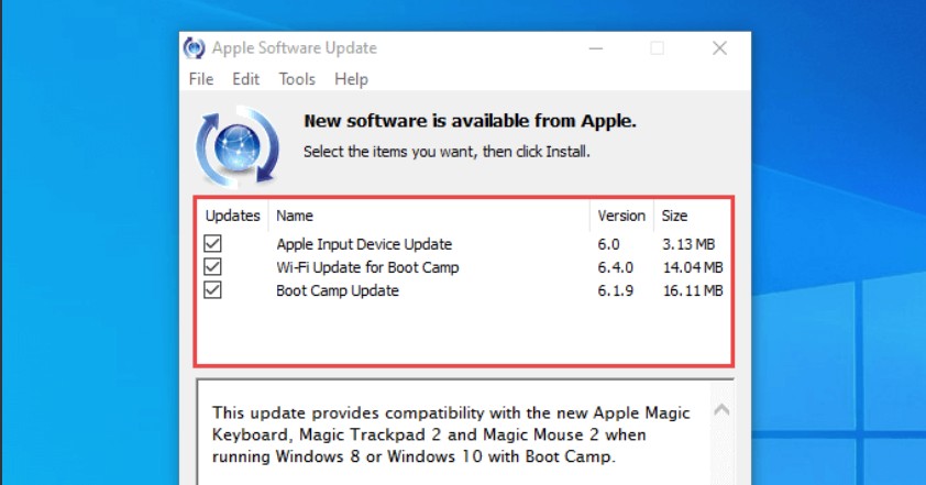 Toinen helppo tapa asentaa viimeisimmät Magic -näppäimistön ohjaimet Windows 11 -tietokoneellesiApple -ohjelmistopäivitys. Tämä havaitsee Windows 11 -tietokoneen kytketty taika -näppäimistö ja löytää ja näyttää sen uusimmat ohjaimet, jotta voit asentaa ne.