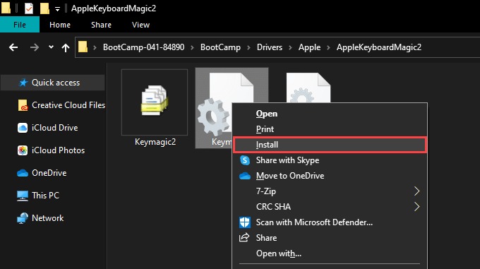7.SiinäOmenaKansio, avaaAppleKeyboardMagic2ja napsauta hiiren kakkospainikkeellaKeymagic2.inftiedosto.