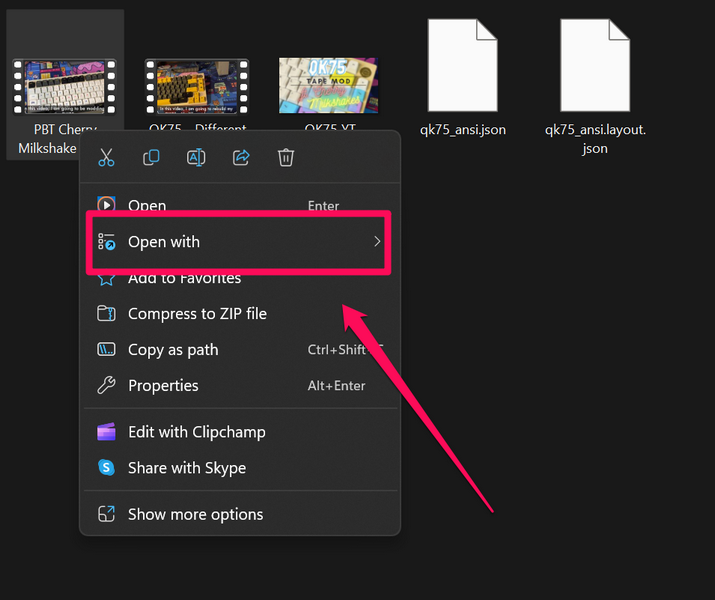 2.SeuraavaksiNapsauta hiiren kakkospainikkeella tiedostoaja vie kohdistinAvata jkn kanssaVaihtoehto kontekstivalikossa.
