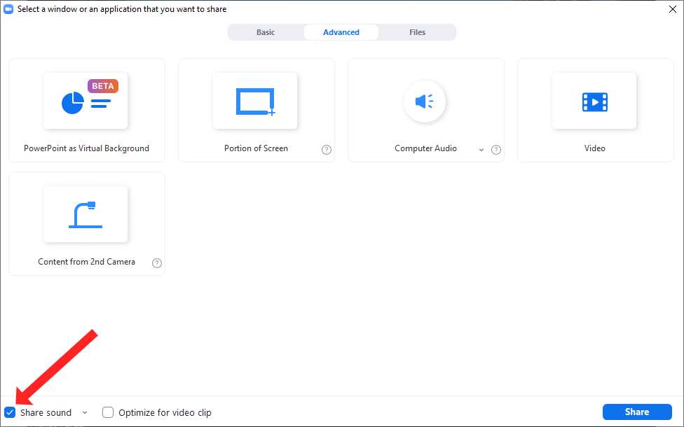 Kun jaat näytön muiden kanssa Zoom-kokouksessa, tietokoneesi ääni on oletuksena mykistetty. Zoomin avulla voit jakaa ääntä muiden ihmisten kanssa näytön jakamisen avulla. Tästä on hyötyä, jos haluat katsoa YouTube-videota muiden kanssa tai jos haluat kuunnella musiikkia kokouksen tauon aikana.
