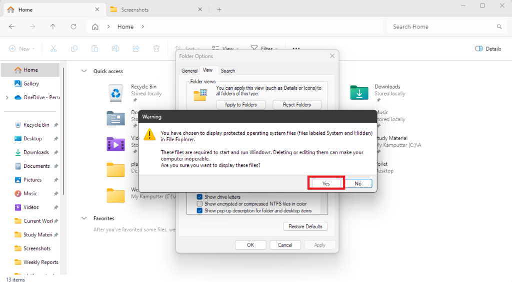 Kaikilla näillä menetelmillä voit helposti käyttää piilotettuja tiedostoja ja kansioita. Lisäksi, jos haluat käyttää Windows 11: n käyttöjärjestelmän suojattuja tiedostoja, näin voit tehdä sen: