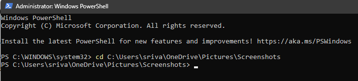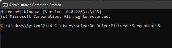 2.Komentokehotteen avaamisen jälkeen sinun on siirryttävä sijaintiin, jossa luulet piilotetun kansiota tai tiedostoja tallennettuna. Voit tehdä sen suorittamalla seuraavan komennon: