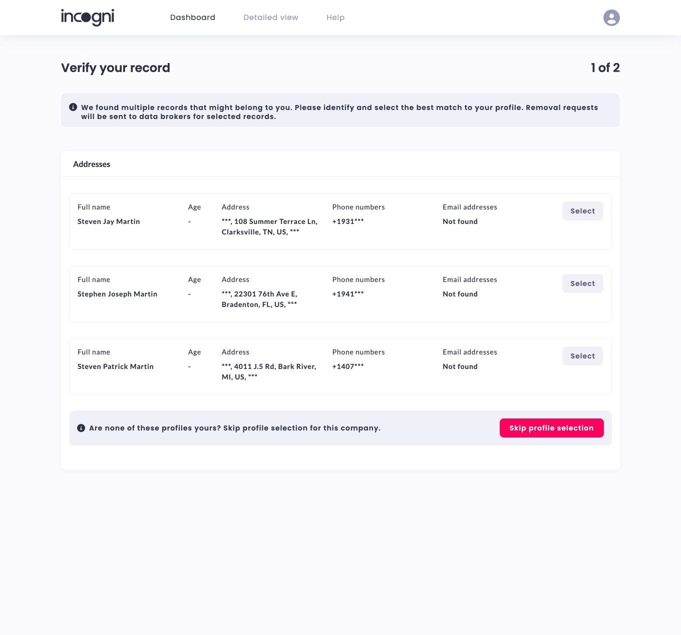 Vaikka he hylkäävät sen, Incogni torjuu hylättyjä vaatimuksia, ja ennen kuin huomaatkaan, et saa näitä roskapostipuheluita. Lisäksi Incogni etsii jatkuvasti lisää tiedonvälittäjiä pitääkseen tietosi poissa kaikilta mahdollisimman paljon.