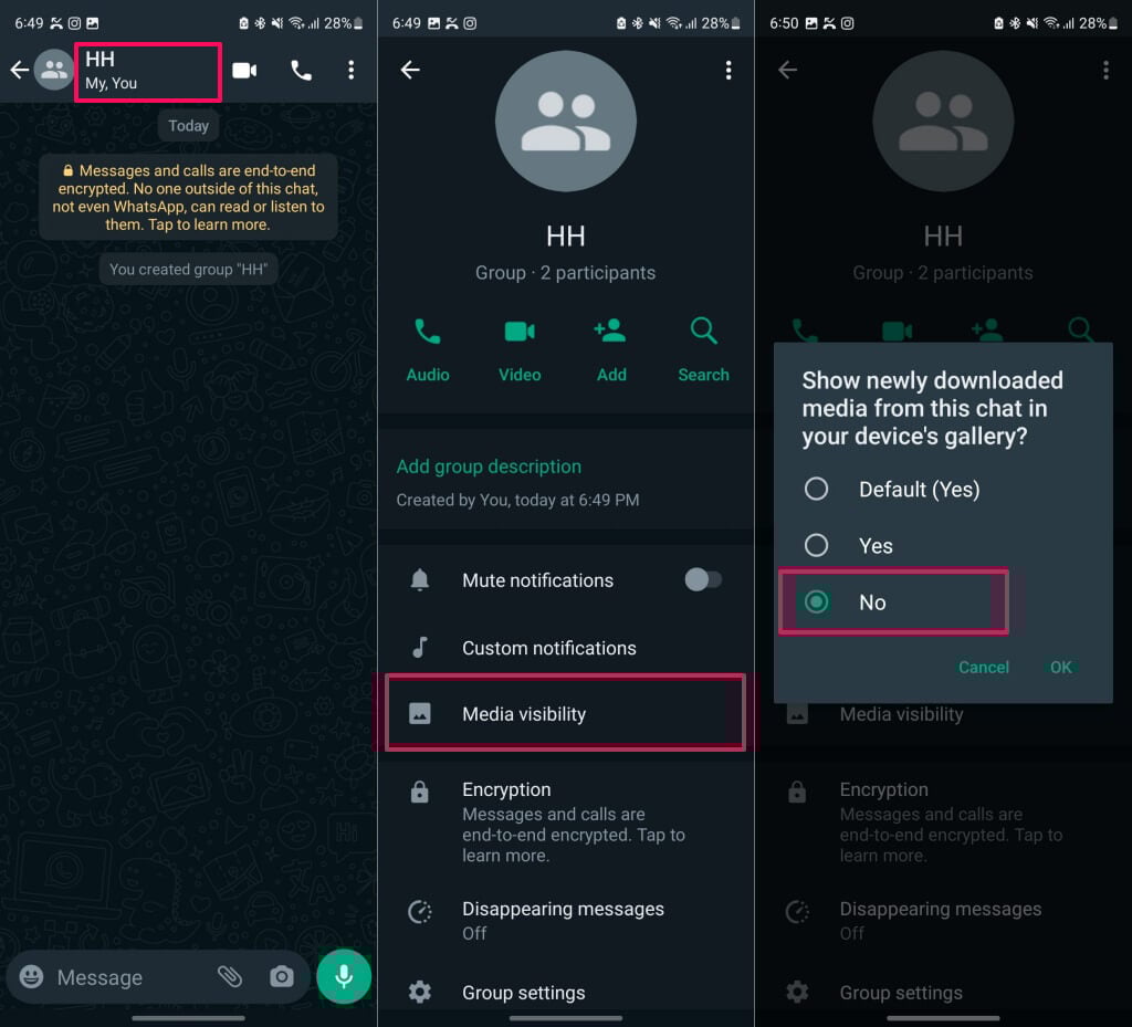 - Avaa WhatsApp-chat tai ryhmä, jossa haluat lopettaa media-automaattisen latauksen.