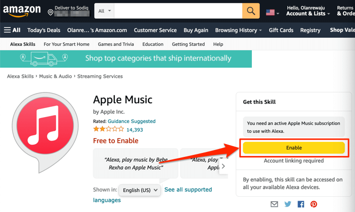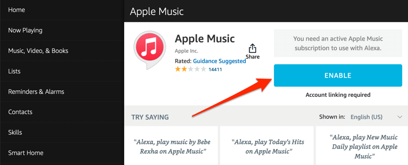 Linkitä Apple Music Alexa Skills -verkkosivulle