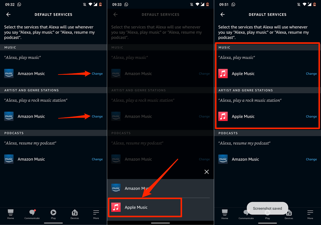Ennen kuin jatkat, tee Apple Musicista oletusmusiikkikirjasto ja -asemapalvelu Amazon Alexa -sovelluksessa.