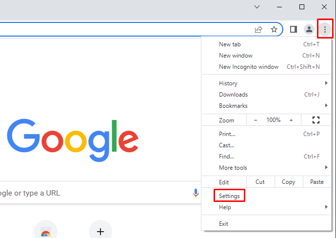 - Avaa Google Chrome ja siirry kohtaanAsetuksetkolmesta pystysuorasta pisteestä.