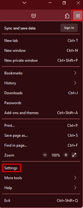 - Käynnistä Mozilla Firefox ja siirry App Menu -kuvakkeeseen näytön oikeassa yläkulmassa.