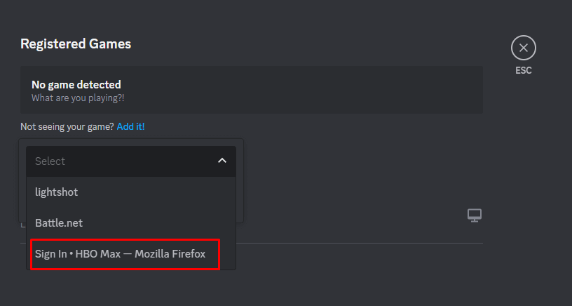 - Valitse avattavasta valikosta avoin selain, jossa HBO Max on, ja napsautaLisää peli-painiketta.