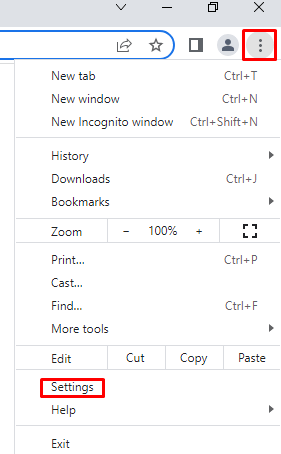 - Avaa Chrome ja napsauta kolme pystysuoraa pistettä avataksesi valikon. Sitten meneAsetukset.