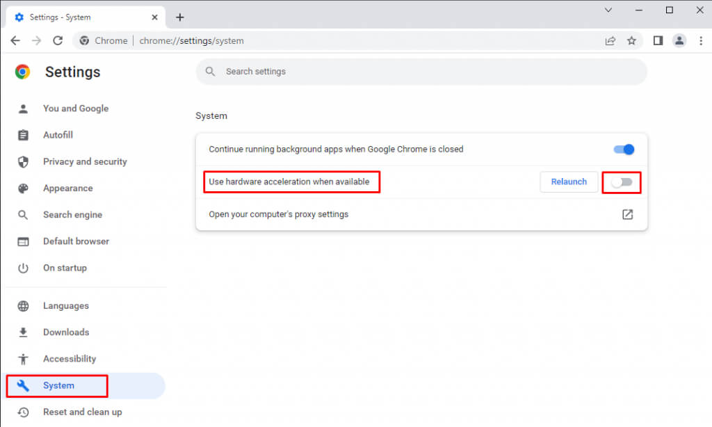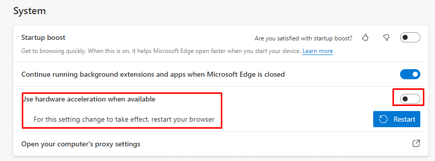 - Siirtyä jhkJärjestelmäja poista käytöstäKäytä laitteistokiihdytystä, kun se on saatavana.