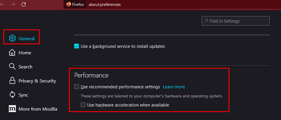 - Panna tarkistamaanKäytä suositeltua suorituskykyä. SeKäytä laitteistokiihdytystä, kun se on saatavanaVaihtoehto näkyy nyt. Poista myös se.