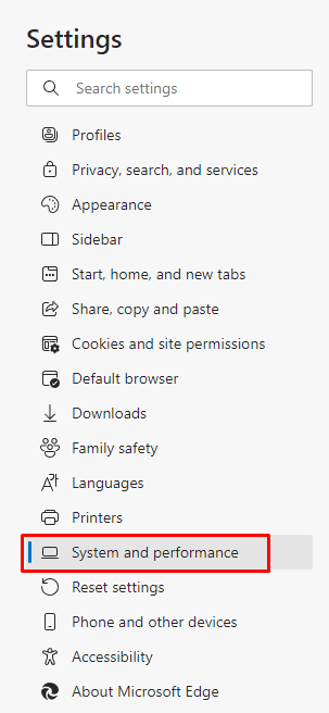 - ValitaJärjestelmä ja suorituskykysivuvalikosta.