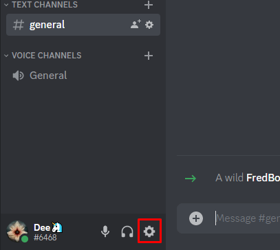- Palaa takaisin Discord -sovellukseen ja löydäAsetuksetKuvake näytön vasemmassa alakulmassa.