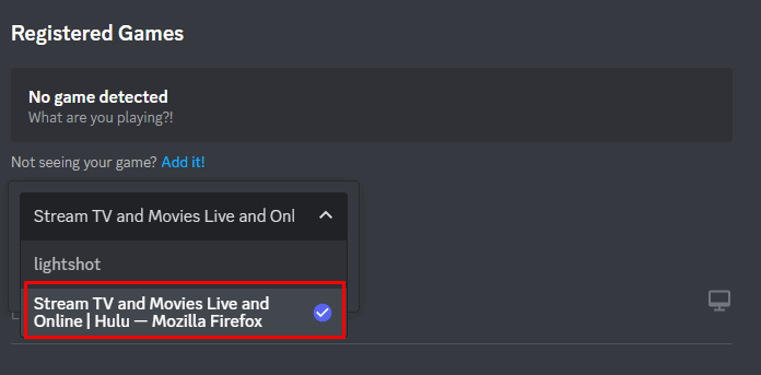 - Valitse avattavasta valikosta Internet-selain, jota käytit Hulun avaamiseen. NapsauttaaLisätä peliäpainike. Huomaa, että jos käytät Hulu -sovellusta selaimen sijasta, valitse sovellus sen sijaan ja lisää se.
