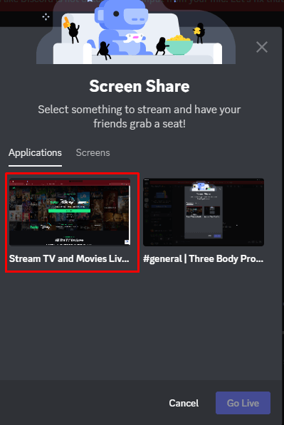 - Valitse show tai elokuva, jonka haluat suoratoistaa Discordissa.