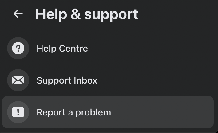 Yksi tapa ottaa yhteyttä Facebookiin on avun ja tuen kautta. Voit tehdä sen sekä älypuhelimella että työpöydällä. Lähetä raportti Facebookiin, avataValikkoNäytön oikeassa yläkulmassa ja seuraa polkuaApu ja tuki-Ilmoita ongelma.