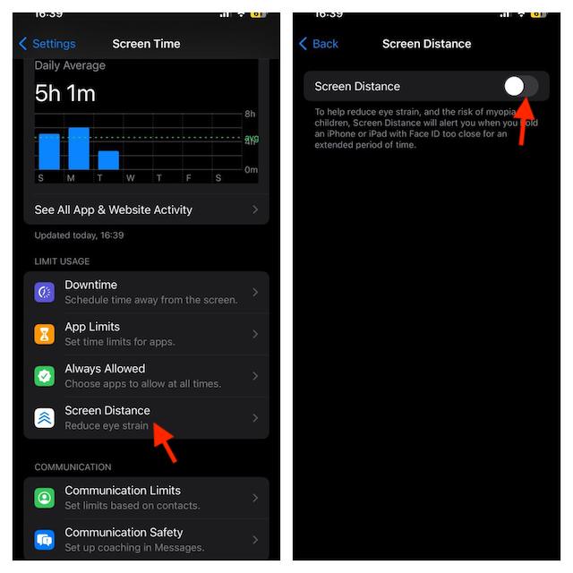 Niille tuntemattomille näytön etäisyys käyttää TrueDepth -kameraa seuraamaan kasvosi etäisyyttä iPhonesta. Vaikka tämä Vision Health -ominaisuus on poikkeuksellisen tarkka, se ei ole täydellinen ja on taipumus toimintahäiriöitä silloin tällöin. Ja kun se tapahtuu, saatat nähdä, että ”iPhone on liian lähellä” tarpeettomasti.