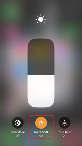 Voit myös kytkeä iPhonen sinisen valonsuodattimen päälle suoraan ohjauskeskuksesta, näin.