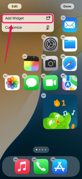 3.Napauta seuraavaksiLisää widgetVaihtoehto kontekstivalikossa.