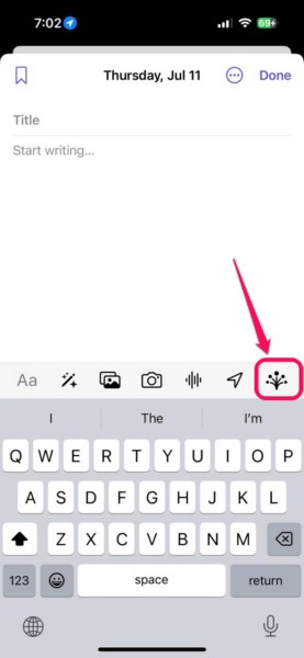 1.Käytä edellisen osan vaiheitaLuo uusi päiväkirjamerkintäIOS 18 -laitteesi päiväkirjasovelluksessa.