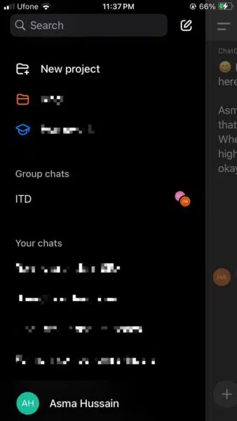 Ryhmäkeskustelut näkyvät iPhonen sivupalkin erillisessä osiossa. Näin voit helposti vaihtaa yksityisviestien ja jaettujen keskustelujen välillä. Kuka tahansa, jolla on kutsulinkki, voi liittyä ja nähdä koko chat-historian, ja voit nollata tai poistaa linkin, jos haluat hallita pääsyä.