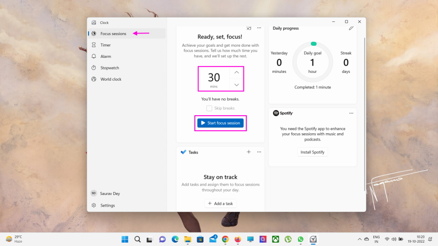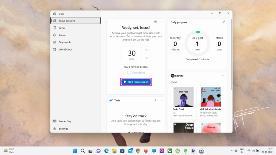 4.Napsauta sinistäAloita Focus Session-painiketta.