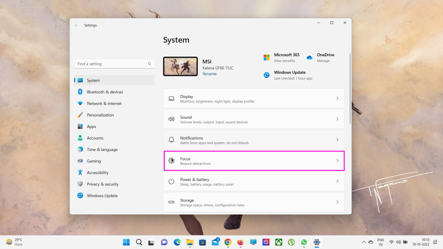 Liikkuminen Focus-asetuksissa Windows 11:ssä