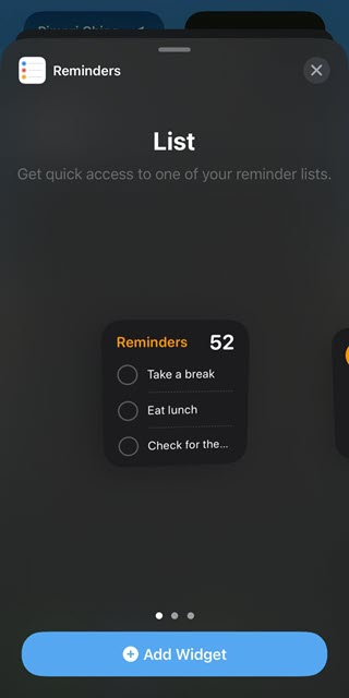 4.Selaa käytettävissä olevien widgetien luetteloa löytääksesi haluamasi. Voit myös etsiä widgetejä hakupalkin avulla. Esimerkiksi lisäänMuistutuksetwidget.