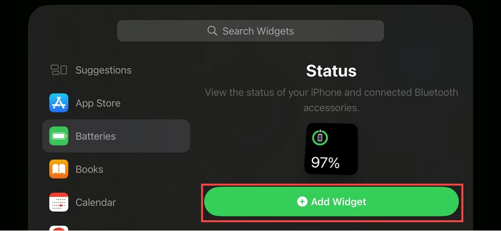 6.NapauttaaLisää widgetVaihtoehto widgetin alla, jonka haluat lisätä valmiusnäyttöön.