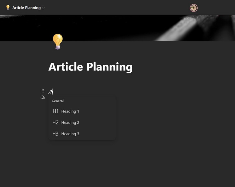 2.Jos esimerkiksi haluat lisätä otsikon asiakirjaan, voit yksinkertaisesti kirjoittaa/jota seuraa an"h"saadaksesi kaikki otsikkovaihtoehdot.