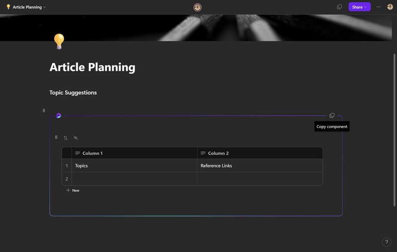 Nyt, kuten aiemmin mainittiin, jokaiselle luomasi työtilalle on Ideat-välilehti. Tämä on oma tila, jonka avulla voit luoda karkeita suunnitelmia, pohtia ideoita tai yksinkertaisesti tallentaa ja tallentaa tärkeitä linkkejä.