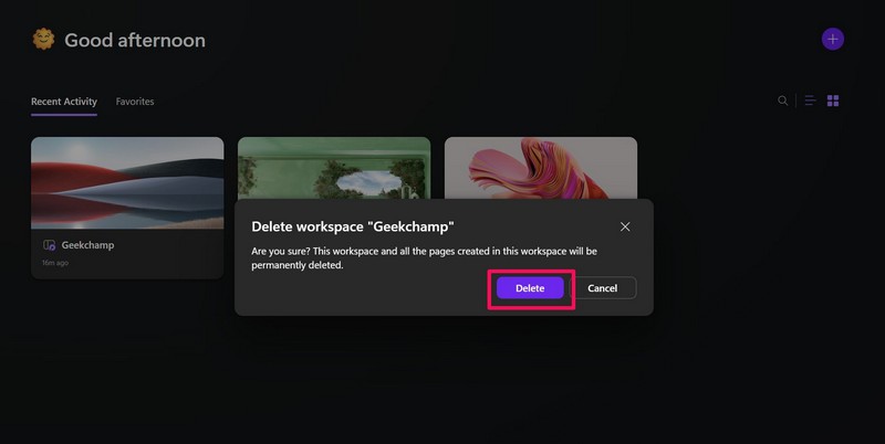 Nyt työtilan poistaminen Loopissa on yhtä helppoa kuin sen luominen. Noudata alla olevia ohjeita työtilan poistamiseksi Loopista: