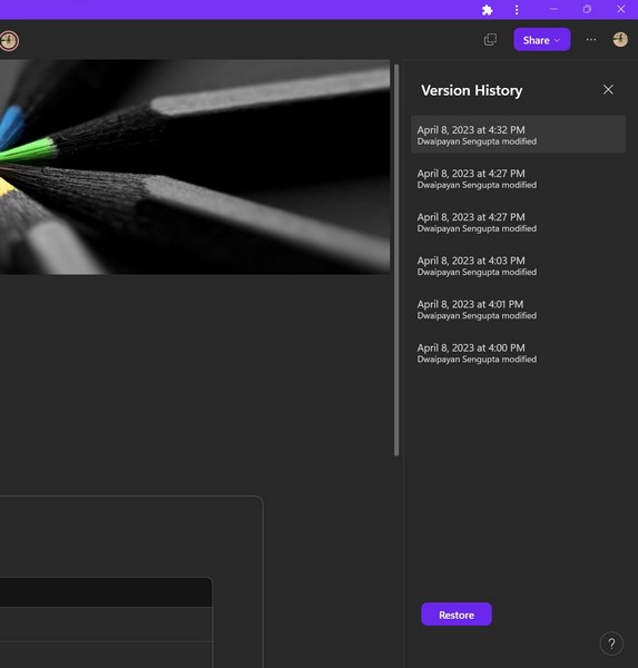 Koska Microsoft Loop on suunniteltu erittäin yhteistyökykyiseksi alustaksi, jossa useat käyttäjät voivat työskennellä yhdessä yhden asiakirjan parissa, Loopissa on ominaisuus, jonka avulla käyttäjät voivat tarkistaa asiakirjan aiemmat versiot ja palata niihin kumoamaan tehdyt muutokset.