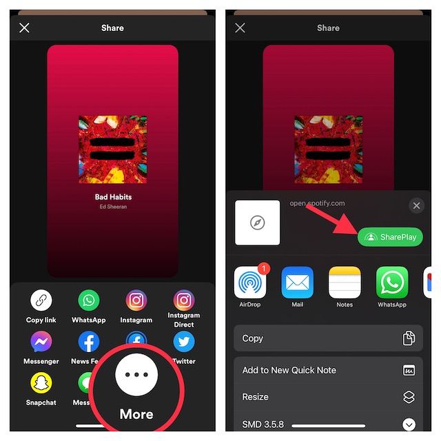 Vaikka voit luottaa useimpiin ensimmäisen osapuolen sovelluksiin, kuten podcastit, Apple Music ja Apple TV, työskennellä SharePlayn kanssa viesteissä, kaikki kolmansien osapuolien sovellukset eivät ole vielä yhteensopivia.