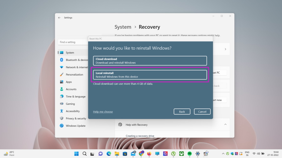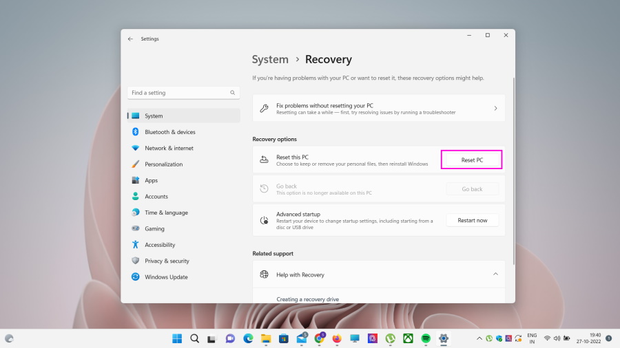 Jos älykäs sovellusohjaus on deaktivoitu, sinun on joko asennettava käyttöjärjestelmä uudelleen tai palautettava tietokone. Ennen jatkamista on hyvä idea varmuuskopioida heidät. Tämä vaihtoehto säilyttää tiedostosi edelleen, vain ollaksesi turvassa. Palautusprosessi poistaa myös kaikki asetukset ja sovellukset. Joten, näin se tehdään.