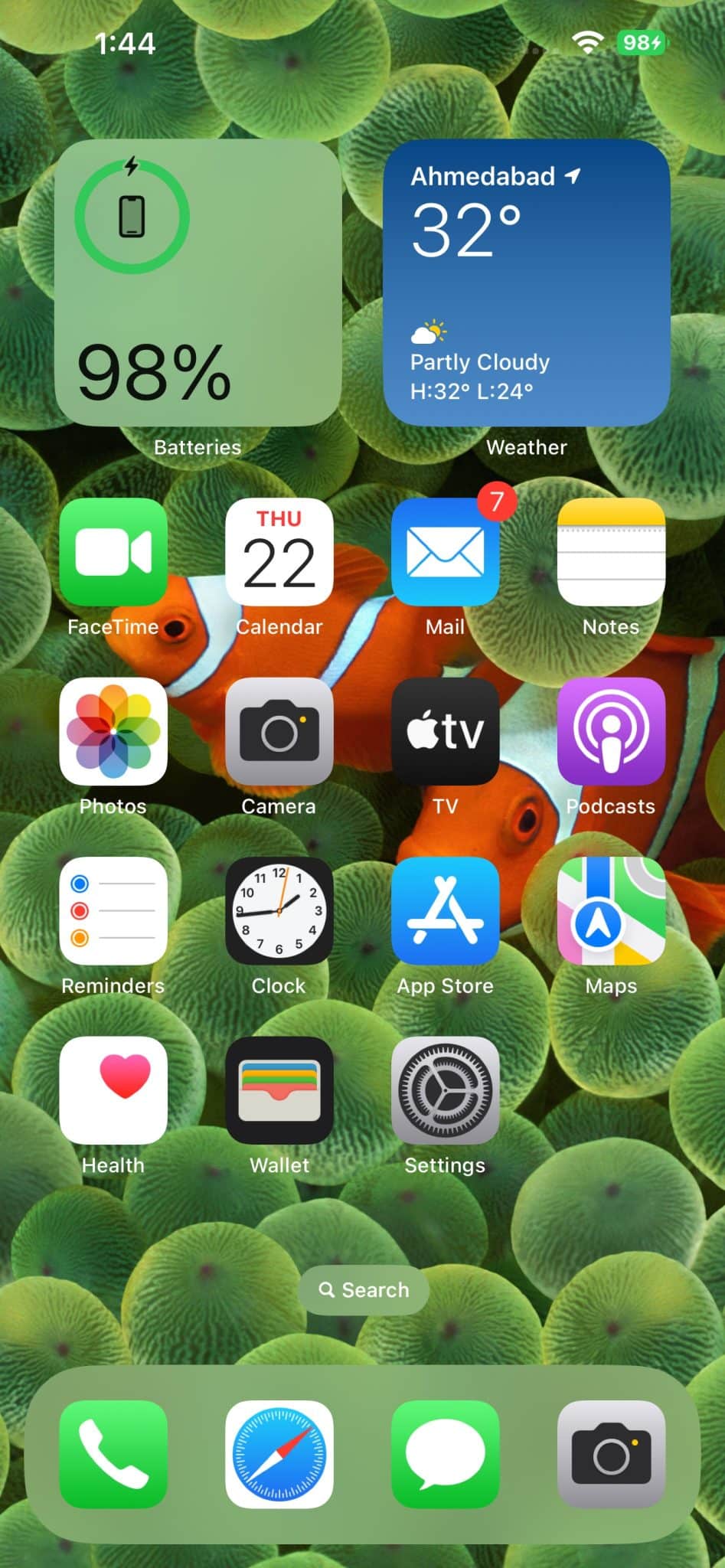 Laatikosta iPhone sisältää Spotlight -haun päälle. Voit pyyhkäistä alas näytölle päästäksesi siihen. IOS 16: n kanssa voit myös pyyhkäistä vasemmalle aloitusnäytöltä ja käydä Spotlight -haussa tämän päivän näkymässä.
