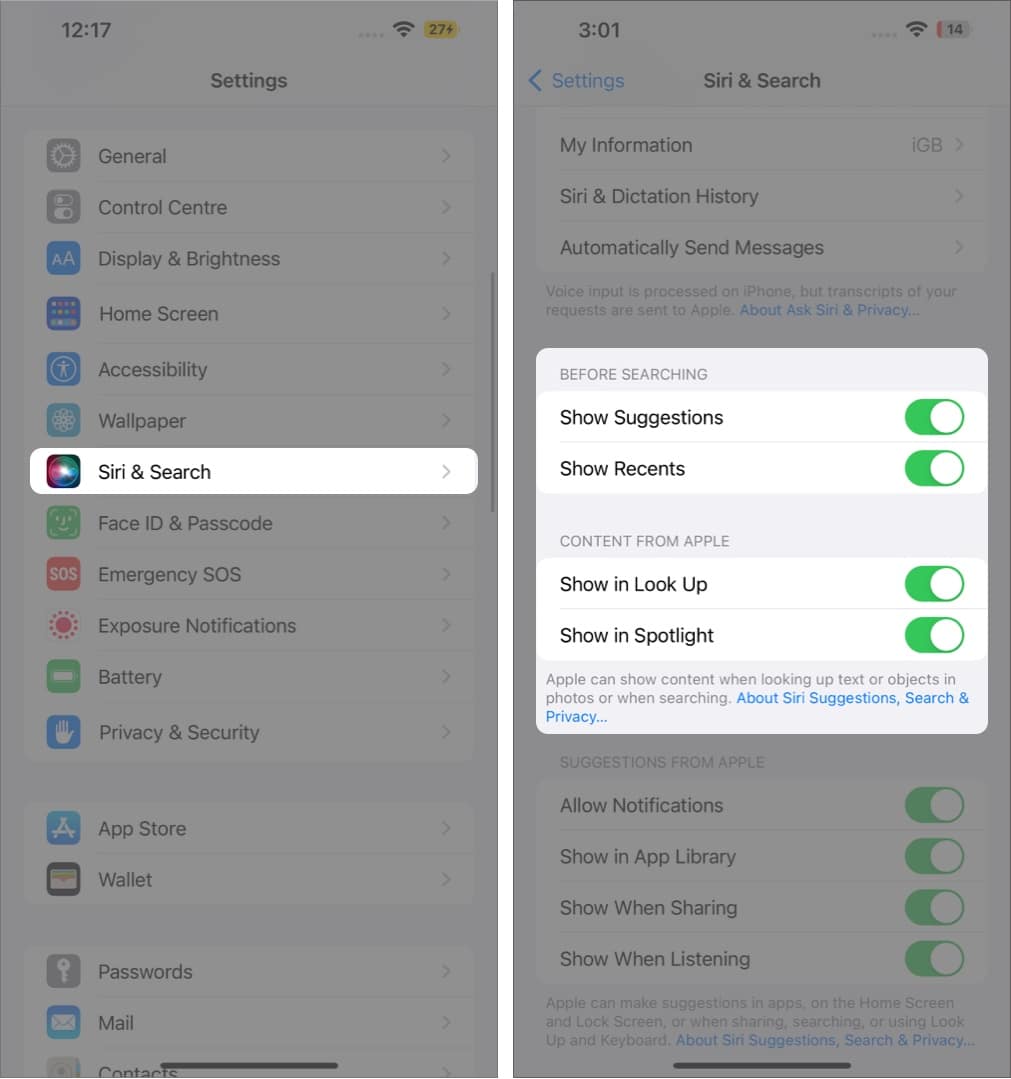 - Kuinka piilottaa Siri -ehdotukset ja viimeaikaiset haut valokeilassa