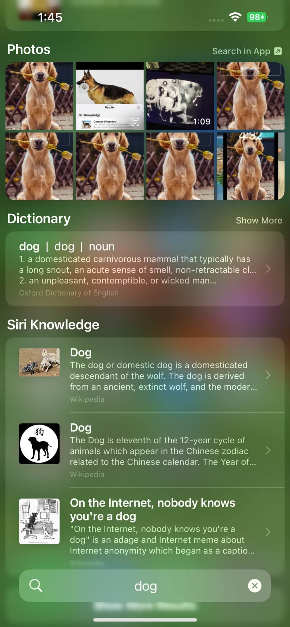 Koska Spotlight -haku on integroitu jokaiseen iOS -ekosysteemin osaan, se tekee koko järjestelmästä haettavan. Spotlight -haku iOS 17: ssä toimii paljon kuin Macin valokeilassa, ja se tekee Spotlight -hausta puhelimesi 'Google'.