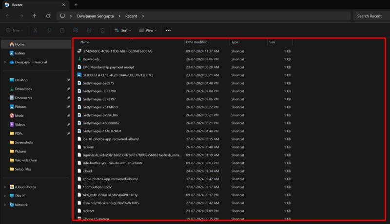Nyt, jos haluat suuremman luettelon viimeaikaisista tiedostoistasi, voit avata viimeaikaisen kansion Windows 11 -tietokoneellasi tai kannettavalle tietokoneelle nähdäksesi tiedostoon liittyvän toimintahistorian. Tehdä niin: