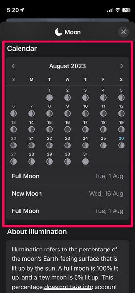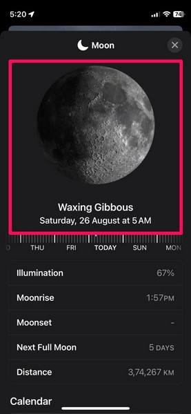 Joten näin voit tarkastella iOS 17: n iPhone -sovelluksen sääkalenteria saadaksesi kokonaisnäkymän eri kuuvaiheista eri päivämäärinä.