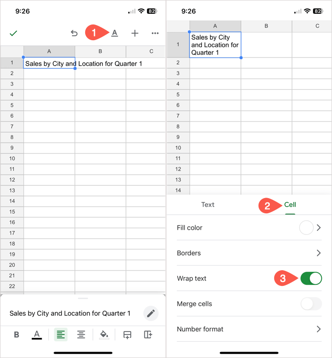 Kuinka kääriä teksti Google -arkkeihin matkapuhelimessa
