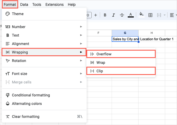 Jos kuitenkin huomaat, että ominaisuus ei toimi tietyssä arkissasi, voit valitaYlivuototaiLeikataVaihtoehto käärevalikossa.