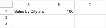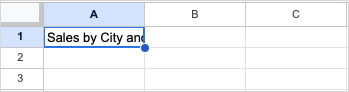 Ylivuoto: Solun teksti vuotaa vierekkäisiin soluihin oikealle. Alla olevassa kuvakaappauksessa voit nähdä tekstin solussa A1 soluihin B1 ja C1.