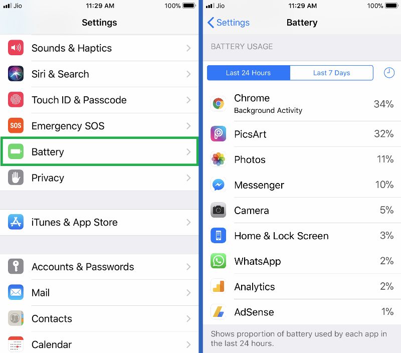 Lopuksi on mahdollista tietää, mitkä sovellukset kuluttavat enemmän iPhonesi akkua. Toimi seuraavasti: