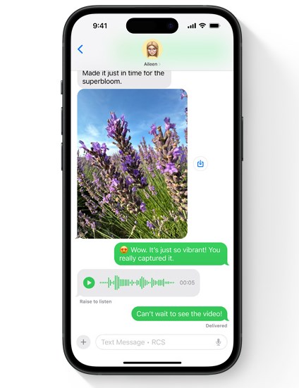 RCS -tukea lisätään iOS 18: een, jonka avulla iPhone -käyttäjät voivat lopulta lähettää laadukkaampia kuvia ja videoita Android -laitteille, samoin kuin tukea muita RCS -toimintoja, kuten kirjoitusilmaisin, toimitus- ja lukukuitit jne. Sivuhuomautuksessa kalenterisovellus tukee nyt muistutuksia.