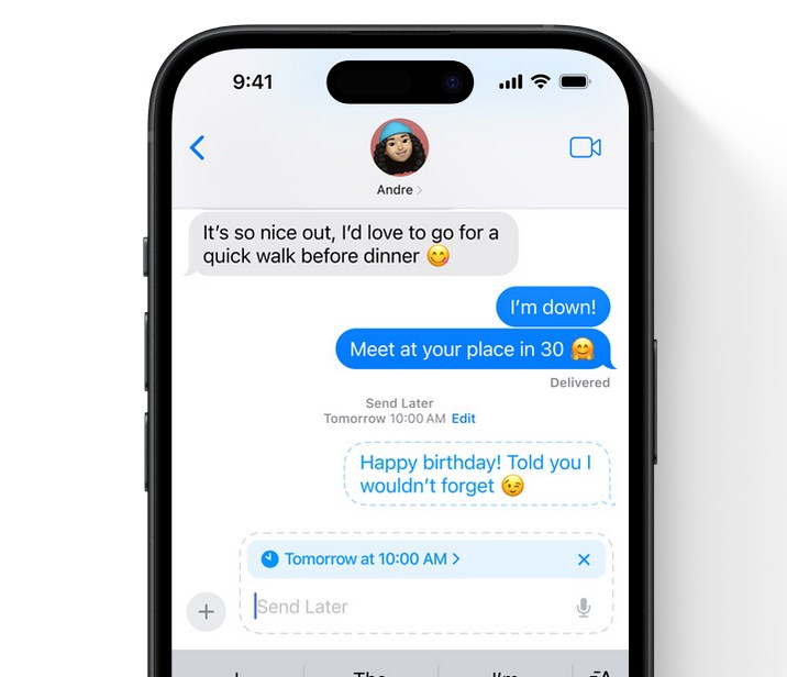 IOS 18: n viestisovelluksessa on parannettu tapbacks -paneeli, jonka avulla voit reagoida viesteihin millä tahansa hymiöillä tai tarralla. Voit ajoittaa viestejä, jotka lähetetään myöhemmin viestien sovellukseen, esimerkiksi toivomaan jollekin heidän syntymäpäivänsä.